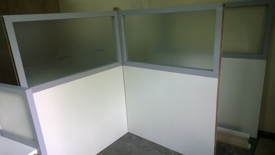 Produksi kali ini adalah cubicle workstation bentuk L dan T untuk total kapasitas 4 person. Bahan multipleks finish HPL. Knockdown bongkar pasang dilaksanakan sendiri oleh pemesan (dilengkapi manual book cara pemasangan). Kelengkapan lain adalah electrical support / power outlet.